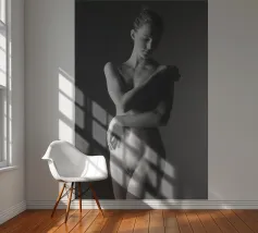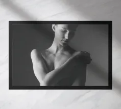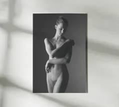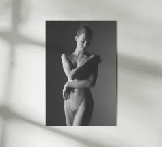 Uno scatto di nudo artistico in bianco e nero di una giovane donna.
