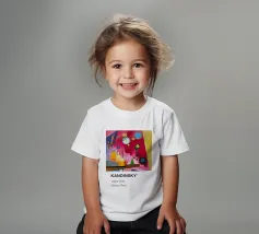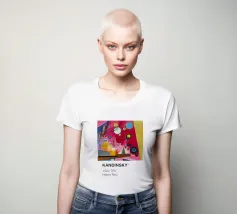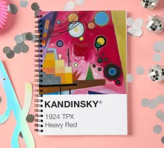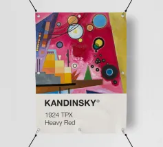 Un famoso dipinto di Kandinsky, Heavy Red, reimmaginato come un'elegante scheda colore Pantone.