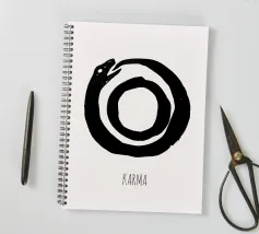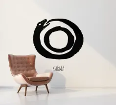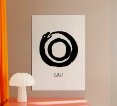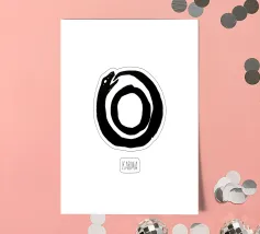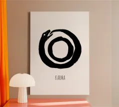 Un simbolo silenzioso e suggestivo: un serpente che si morde la coda, che cattura il ciclo del karma e del ritorno senza fine. Le linee semplici, i toni pacati e la profondità sottile lo fanno sembrare antico e moderno allo stesso tempo: un cenno senza tempo all'equilibrio, alle conseguenze e alla continuità.