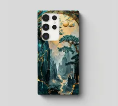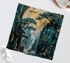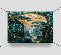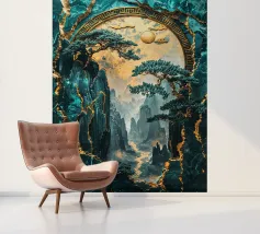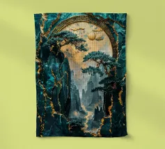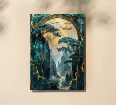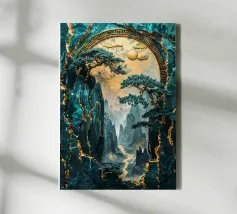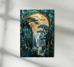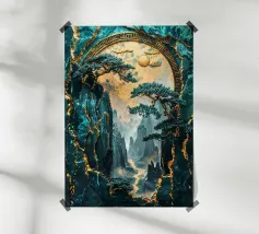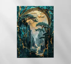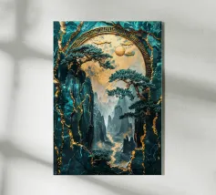 Una catena montuosa color smeraldo, ornata da kintsugi dorati, prende vita in questa accattivante opera d'arte. Un simbolo della forza e della bellezza della natura.