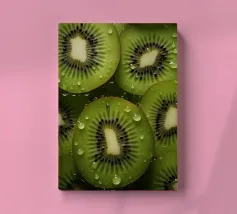 kiwi frutta fette verde semi succoso fresco cibo vitamina sano naturale organico tropicale primo piano struttura strati gocce d'acqua rinfrescante modello natura morta