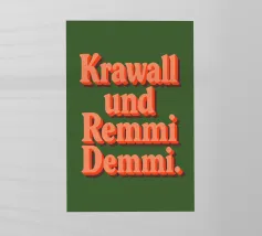 "Riot e Remmi Demmi". - Questo audace poster tipografico porta molta energia alla parete. Con il suo carattere retrò, l'ombra a goccia e i colori vivaci, è una dichiarazione di gioia di vivere, caos e buon umore. Perfetto per salotti, cucine condivise, studi o sale per feste. Se amate il selvaggio, appendete il Remmidemmi proprio nel vostro cuore.