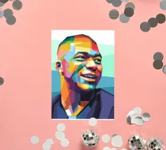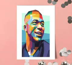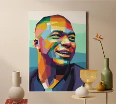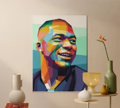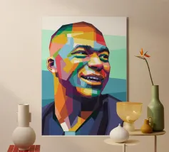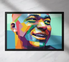Kylian Mbappé in stile WPAP è un ritratto vibrante e geometrico della stella del calcio francese, realizzato con forme audaci e colorate. L'opera mette in risalto l'espressione dinamica e il look iconico di Mbappé, riflettendo la sua personalità energica e moderna attraverso la distintiva tecnica WPAP (Wedha's Pop Art Portrait).
