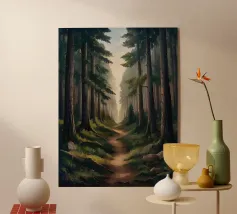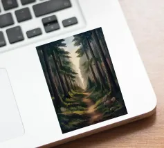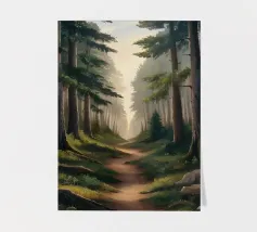 Un sentiero sereno si snoda attraverso una foresta rigogliosa e soleggiata, invitandovi a esplorare le sue tranquille profondità.