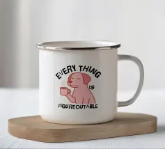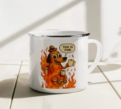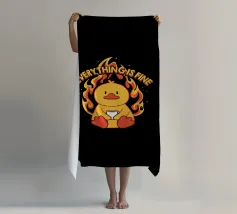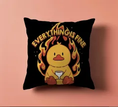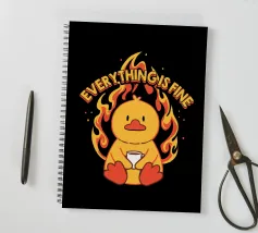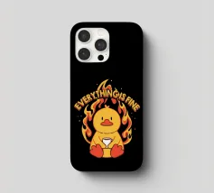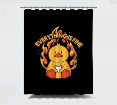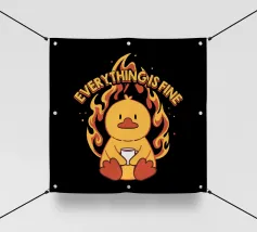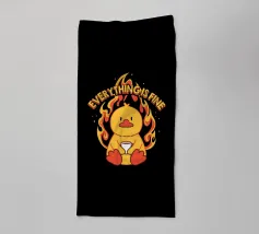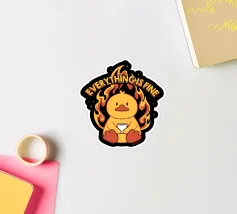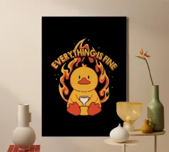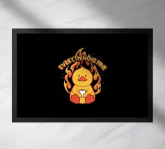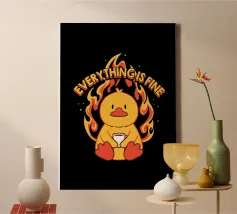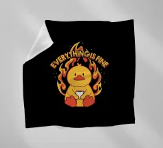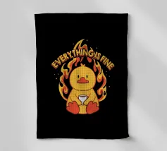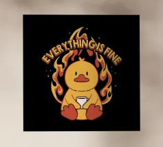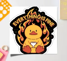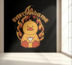 Un anatroccolo sereno tiene in mano la sua tazza mentre sullo sfondo si diffonde un caos infuocato, accompagnato dalla frase "Everything Is Fine". Questo disegno rappresenta le persone che affrontano il caos della vita con una tazza di caffè e un tocco di ironia. Perfetto per gli amanti dei meme, dell'umorismo nero e dei momenti di pura negazione dello stile.