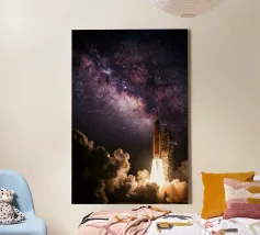Stellar Launch cattura un momento mozzafiato in cui l'ambizione umana incontra l'universo infinito. Un potente razzo decolla attraverso nuvole incandescenti, sfrecciando verso un cielo della Via Lattea ricco di dettagli, pieno di stelle e polvere cosmica. Il drammatico contrasto tra i motori infuocati e il vasto cosmo notturno simboleggia l'esplorazione, l'innovazione e il sogno di andare oltre la Terra. Perfetta per gli appassionati di spazio, gli amanti della scienza e gli interni moderni, quest'opera d'arte aggiunge energia e ispirazione a soggiorni, uffici, studi o spazi creativi.