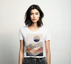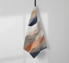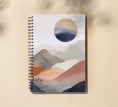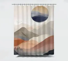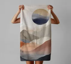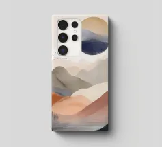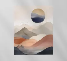 Questo tranquillo paesaggio astratto fonde i toni tenui della terra con texture fluide, offrendo un senso di calma e bellezza senza tempo. I caldi ruggini, i morbidi beige e i profondi blu navy sono abbinati a un audace elemento circolare, che ricorda un corpo celeste, creando un disegno moderno ma sereno. Dettagli sottili, come sottili increspature lineari e deboli sagome di alberi, aggiungono profondità ed equilibrio a questa composizione minimalista.