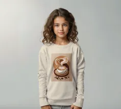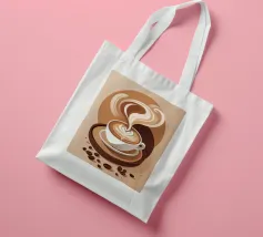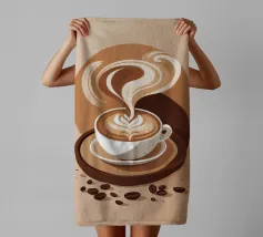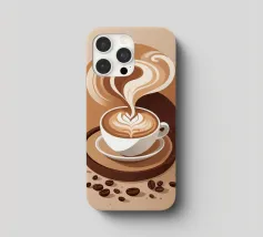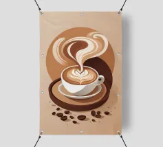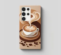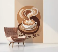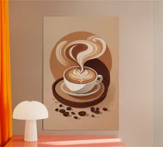 Un'opera d'arte splendidamente minimalista raffigurante una tazza di caffè fumante con latte art che scorre. I toni caldi del marrone e le forme morbide catturano l'essenza del comfort, della semplicità e delle mattine lente - ideale per caffè, cucine e spazi abitativi accoglienti.