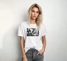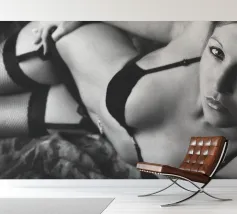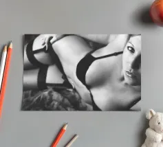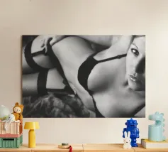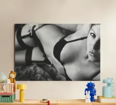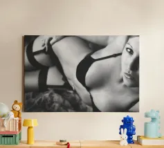 Uno scatto in bianco e nero di una giovane donna in lingerie