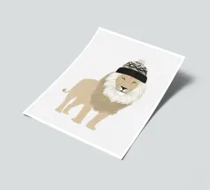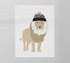 Questa illustrazione minimalista mostra un simpatico leone con un cappello di lana che delizia con il suo affascinante disegno in stile cartoon. Lo sfondo bianco enfatizza la grafica disegnata a mano e conferisce all'arte moderna un'estetica elegante. Perfetto per gli amanti dei gatti, questo simpatico animale dona un tocco di atmosfera africana a qualsiasi ambiente.