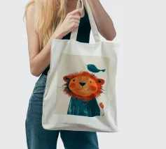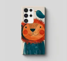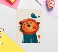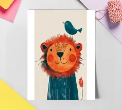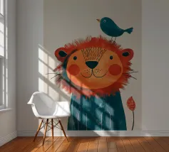 Leone gioioso con uccello