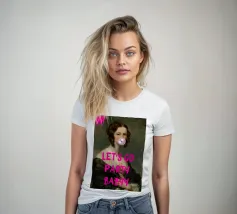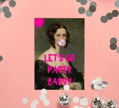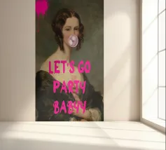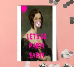 Preparatevi a festeggiare con "Let's Go Party Babyy", una vivace stampa pop art che dà un tocco giocoso e moderno alla ritrattistica classica. Questa accattivante opera d'arte raffigura un'illustre figura storica, con uno sguardo diretto e invitante, che soffia spensieratamente una bolla di gomma da masticare. Il testo audace e vibrante in rosa caldo "LET'S GO PARTY BABYY" sovrasta l'immagine, facendo una dichiarazione chiara ed energica. Una goccia di vernice rosa nell'angolo in alto a sinistra aggiunge un'atmosfera urbana e tagliente. È una miscela perfetta di fascino senza tempo e divertimento contemporaneo, ideale per aggiungere un tocco di energia e di stile a qualsiasi