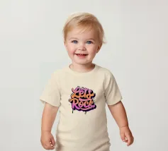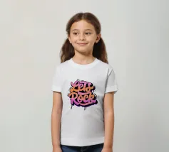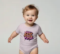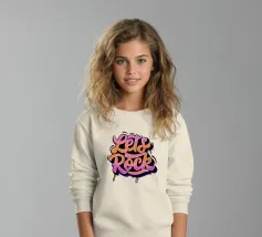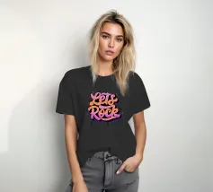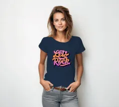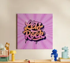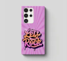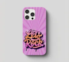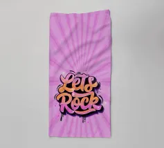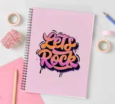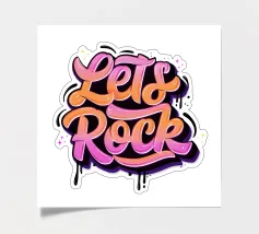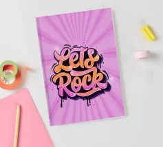 Un hand lettering mega-cool con scritte groovy in stile casual-rock. Facciamo rock. Facciamo rock. Affrontiamo questo. Divertimento, energia, entusiasmo, vigore, grinta, energia positiva, dinamismo: tutto questo è racchiuso in questo grande lettering. Con questo motivo nei colori rosa, arancione, nero e viola, avrete la garanzia di un aspetto forte. Un motto divertente. Una dichiarazione di stile.
