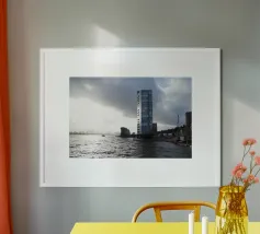 Nella nebbia blu profonda, i grandi leviatani di ferro si assopiscono. Questa fotografia dall'atmosfera ammaliante trasforma un cantiere navale in un paesaggio mitico. Le sagome imponenti di gru massicce emergono da una fitta coltre di nebbia, le loro forme potenti si ammorbidiscono in forme spettrali e preistoriche. Un'opera potente e misteriosa, che trova una bellezza astratta e cruda nel mondo industriale, avvolto nel silenzio. Uno sguardo accattivante su un mondo segreto, perfetto per uno spazio moderno e contemplativo.