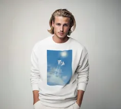 Un'illustrazione sognante e piena di luce di due aquiloni bianchi che si librano in un cielo azzurro, con delicate code di nastro che scivolano vicino al sole splendente. Con una texture pastello e una tavolozza pacifica, quest'opera d'arte cattura l'essenza della libertà, della nostalgia e della gioia tranquilla. Perfetto per asili nido, spazi ariosi e per chiunque sia attratto da scene di serenità edificanti e minimaliste.