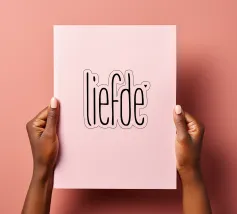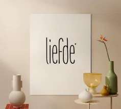 Liefde, amore in olandese. Tipografia in nero e bianco (trasparente). È possibile cambiare il colore dello sfondo. Poster tipografico minimalista.