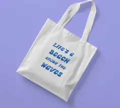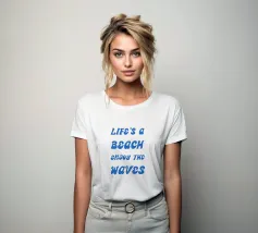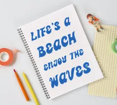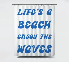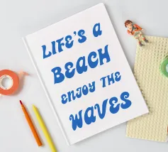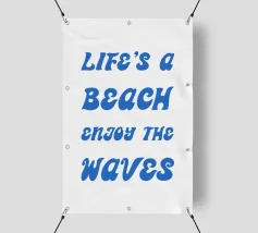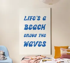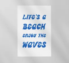 Scoprite il design rilassato "Life's a Beach - Enjoy the Waves". Questo poster minimalista combina una tipografia elegante con un messaggio positivo. La scritta "LIFE'S a BEACH ENJOY THE WAVES" appare in un'elegante grafia blu che trasmette un effetto delicato e simile a quello delle onde. La palette di colori pacati enfatizza l'atmosfera rilassata e solare del disegno e ricorda il dolce fluire del mare.