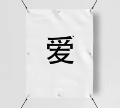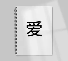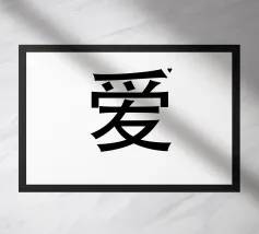 爱 come te (amore) in cinese. Tipografia in nero e bianco (trasparente). È possibile cambiare il colore dello sfondo. Poster tipografico minimalista.