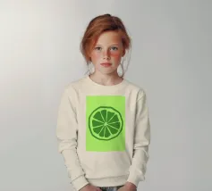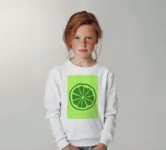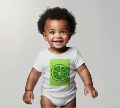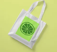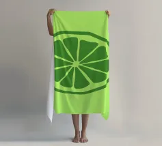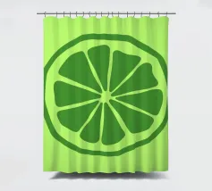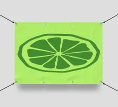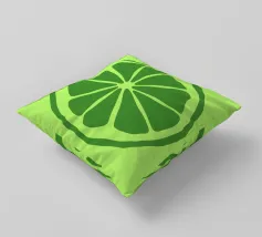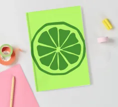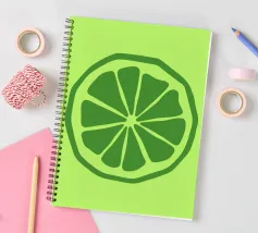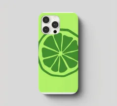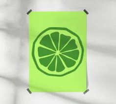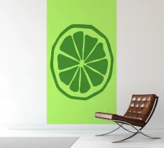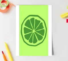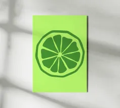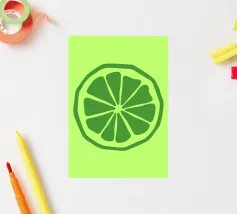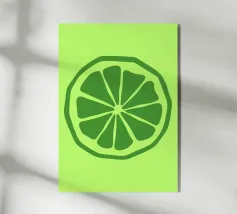 Una fetta di lime verde stilizzata, dalle linee decise e pulite, spicca su uno sfondo verde più chiaro. Il design semplice enfatizza gli spicchi e la scorza del lime.