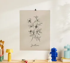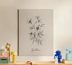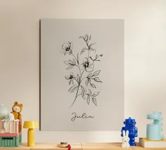 Gestuale in bianco e nero di fiori con nome o citazione personalizzabili