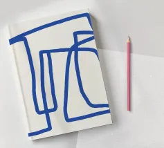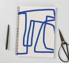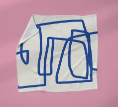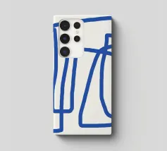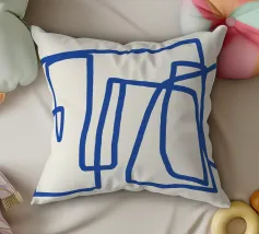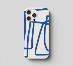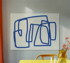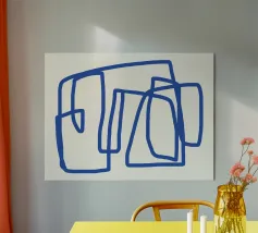 Linee astratte blu creano una serie di forme angolari interconnesse su uno sfondo bianco. Le forme sovrapposte suggeriscono movimento e complessità all'interno di un'estetica minimalista.