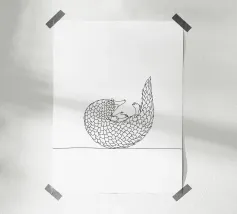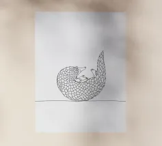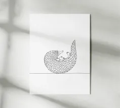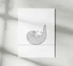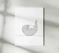 Una line art minimalista di un pangolino, perfetta per gli appassionati di fauna selvatica e per le decorazioni ispirate alla natura. Un'aggiunta distintiva a qualsiasi spazio.