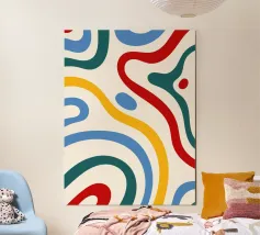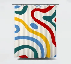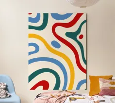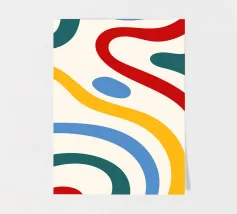 Questo design colorato con linee curve in rosso, blu, verde e giallo combina vibrazioni retrò e astrazione moderna. Le forme fluide su uno sfondo chiaro creano dinamismo e freschezza, perfetti per gli spazi creativi. Che si tratti di un murale, di una tazza, di un cuscino, di una tenda da doccia o di una T-shirt, quest'opera d'arte porta energia e stile in ogni giorno.