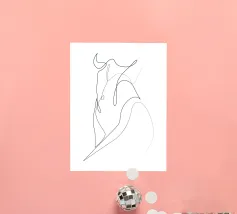 Illustrazione minimalista al tratto di una forma femminile nuda che si piega con grazia. Disegnata con un unico tratto fluido, l'opera d'arte cattura sia la sensualità che la serenità, invitando l'osservatore a un tranquillo momento di apertura e flusso. Perfetto per gli interni moderni che apprezzano l'eleganza, la calma e la forza femminile.
