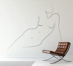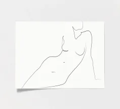 Un nudo reclinato disegnato in linea - morbido, astratto e a suo agio. La figura si appoggia delicatamente su un braccio, offrendo un senso di calma, riposo e presenza incarnata. Una tranquilla dichiarazione di equilibrio e bellezza.