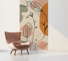 Un'opera d'arte delicata e minimalista che presenta i contorni di fiori e foglie nei toni del nero e dell'arancione. L'opera incarna un approccio moderno e scandinavo all'arte botanica, concentrandosi sulla forma e sulla semplicità.
