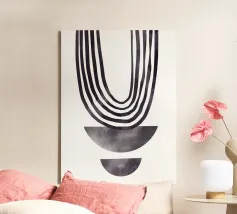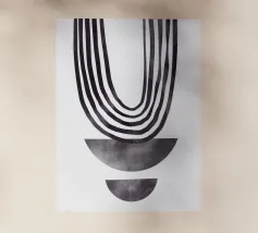 Questo elegante design colpisce per l'armoniosa composizione di linee curve e semicerchi geometrici nelle profonde tonalità del nero e del grigio. L'estetica minimalista e le linee moderne conferiscono al motivo un'eleganza senza tempo. Perfetta per murales, cuscini, tazze o cover per cellulari, quest'opera d'arte si integra perfettamente negli spazi abitativi moderni e scandinavi. Un regalo ideale per gli amanti dell'arte astratta e del design contemporaneo.