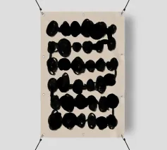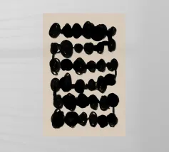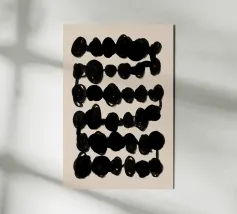 Esplorate la semplicità dell'arte astratta con questo pezzo caratterizzato da linee e forme nere e ondulate su un morbido sfondo beige. Perfetto per interni moderni e minimalisti alla ricerca di texture e contrasti sottili.