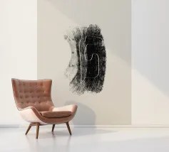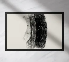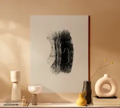 Forme e linee organiche moderne in pennellate bianche e nere con sfondo beige. Opera d'arte astratta in stile minimalista. L'opera d'arte minimalista si adatta bene a uno stile di vita moderno, essenziale, bohémien e industriale. Se vi piace la semplicità e l'eleganza.