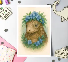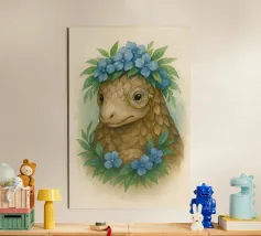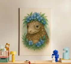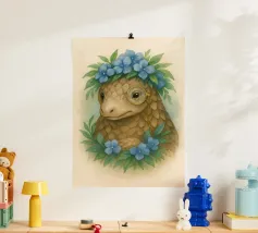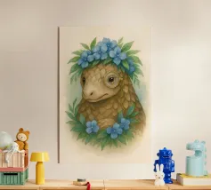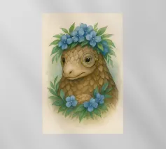 Entrate in un mondo stravagante dove natura e fascino incontrano l'intelletto. Questa deliziosa illustrazione presenta un sereno pangolino adornato con una corona di vivaci fiori blu e un distinto monocolo, che unisce eleganza e innocenza. La morbida texture ad acquerello e i toni della terra conferiscono un'atmosfera da libro di fiabe senza tempo, perfetta per gli amanti degli animali, gli appassionati di fantasy e coloro che apprezzano l'arte unica con un tocco narrativo. Un pezzo che scalda il cuore e che stimola la curiosità e la conversazione.