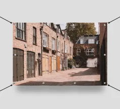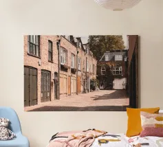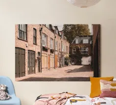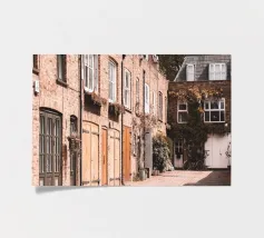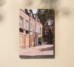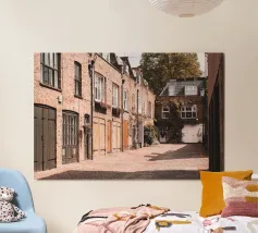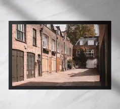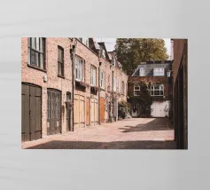 In un tranquillo vicolo cieco di Notting Hill, le facciate in mattoni dell'architettura inglese, nella morbida luce autunnale, ricordano l'elegante e nostalgica autenticità di una macchina fotografica.