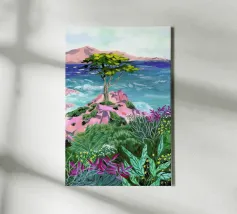 Sarah Gesek conferisce ai suoi paesaggi un'atmosfera da paese delle meraviglie ultraterreno con colori ricchi e porta mondi lontani nelle vostre case. L'artista di Seattle preferisce lavorare con colori acrilici su carta, ma anche con gouache, matite colorate, pastelli a cera e altro ancora. Ispirate dallo spettacolo naturale di rocce scoscese e giardini ondulati, notti stellate e cieli atmosferici, le opere di Sarah infondono un senso di vagabondaggio. Immergetevi, camminate e innamoratevi di nuovo del nostro mondo.