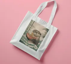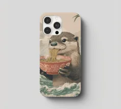 Un'affascinante lontra è al centro di quest'opera d'arte umoristica, che mangia con gusto una ciotola fumante di ramen, nel mezzo di un paesaggio stilizzato e ondulato che ricorda le classiche xilografie giapponesi. I raffinati dettagli dell'illustrazione, combinati con gli ornamenti asiatici sulla ciotola e le piante di bambù sullo sfondo, creano un'affascinante combinazione di rappresentazione animale, arte culinaria ed estetica dell'Estremo Oriente.