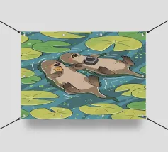 lontre ninfee acqua fiume macchina fotografica galleggiante pesce fauna selvatica natura vita acquatica fotografia giocoso relax foglie anatroccoli stagno animali selvatici illustrazione cartone animato-animali amichevole