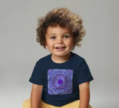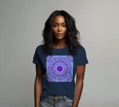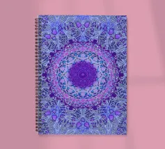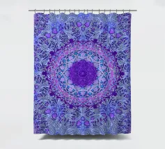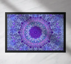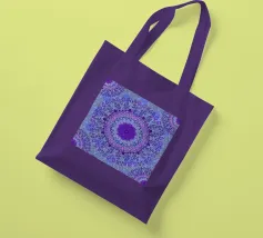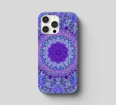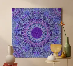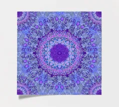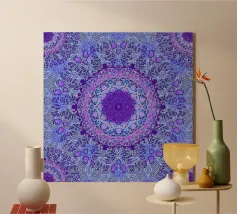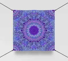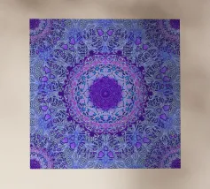 Mandala digitale in stile Boho in viola pervinca e blu. Stratificato con molti motivi barocchi.