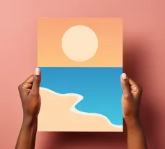 Onde delicate si increspano su una superficie di vetro, riflettendo un cielo morbido nei toni del blu e della luce. L'orizzonte si estende ampio e aperto, evocando pace, chiarezza e il ritmo lento della natura. Minimale e serena, quest'opera d'arte invita a respirare profondamente, a pensare con calma e a godere del comfort senza tempo del mare.