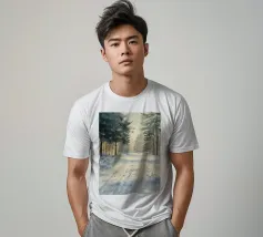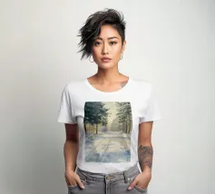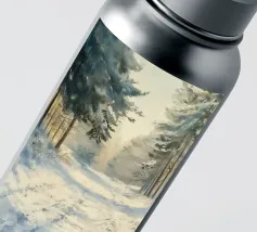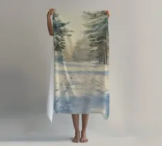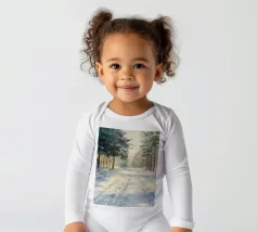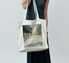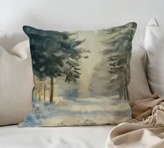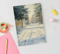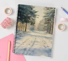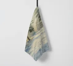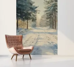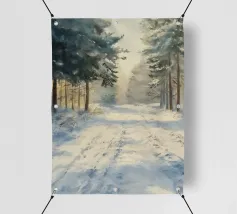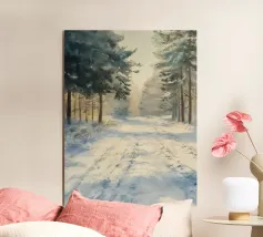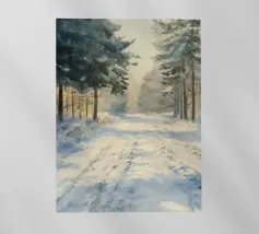 Una tranquilla mattina d'inverno si dispiega in questo dipinto d'atmosfera: un sentiero innevato nella foresta conduce attraverso alti abeti ricoperti di brina. La luce delicata del sole nascente filtra attraverso gli alberi e inonda il paesaggio di un caldo bagliore dorato. Le tracce sulla neve raccontano il movimento nella quiete: natura, pace e luce si combinano per creare un armonioso idillio invernale.