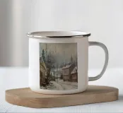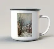 Una pittoresca mattina d'inverno in un tranquillo villaggio: le case coperte di neve, gli alberi slanciati e le lontane guglie delle chiese si stagliano dolcemente nella luce bluastra. Il sentiero tra la neve conduce l'occhio attraverso il tranquillo scenario ed evoca ricordi di tranquille giornate invernali. Il dipinto unisce nostalgia, tranquillità e bellezza naturale in colori armoniosi e pennellate raffinate.