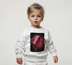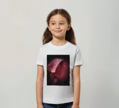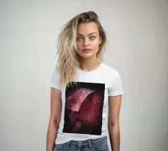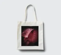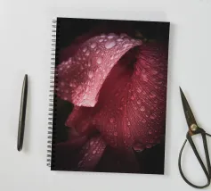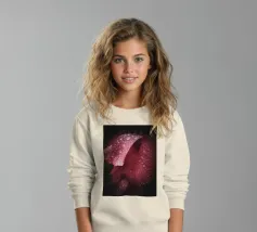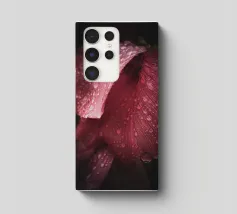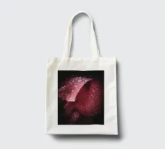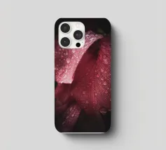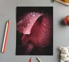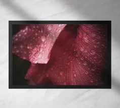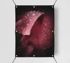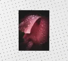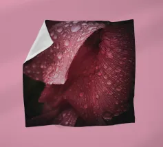 Gocce d'acqua su un fiore color malva come in una lunatica natura morta.