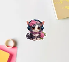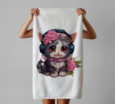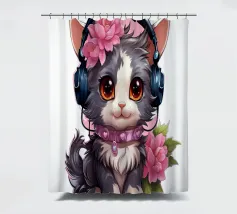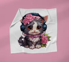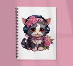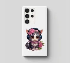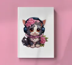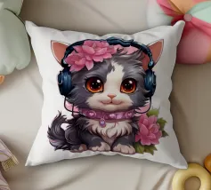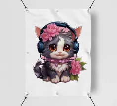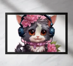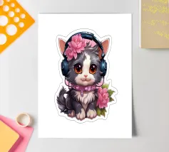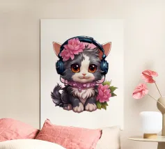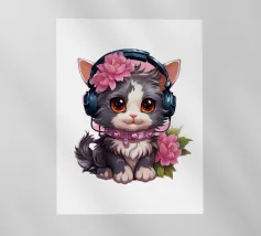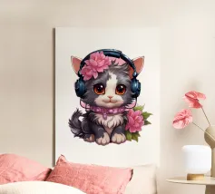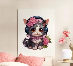 Un simpatico gattino con le cuffie.
