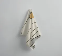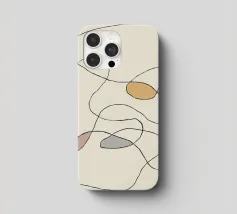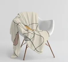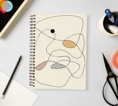 Linee astratte formano una rete intricata su uno sfondo beige, con macchie di colore nero, senape, rosa e grigio che aggiungono contrasto. Le linee sottili e serpeggianti danno un senso di movimento e di flusso.