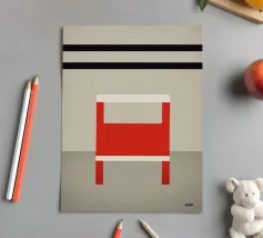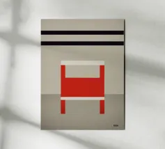 Questo poster combina le forme chiare del Bauhaus e i colori vivaci del Suprematismo in una rappresentazione minimalista di una sedia rossa su uno sfondo grigio. Le barre nere e i forti contrasti creano un'opera d'arte senza tempo che valorizza gli interni moderni ed eleganti. Il linguaggio minimalista del design e i colori decisi lo rendono ideale per gli amanti dei classici del design e dell'arredamento minimalista. Perfetto come accento in soggiorni o uffici, aggiunge un'atmosfera elegante e artistica a qualsiasi ambiente.