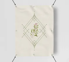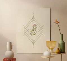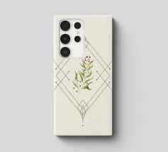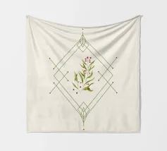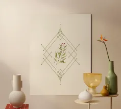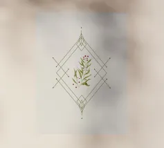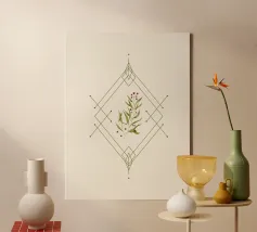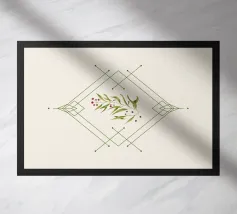 Composizione natalizia minimale, geometria e ramoscello di agrifoglio dipinto in digitale.