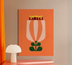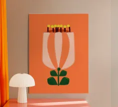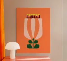 Date un tocco di bellezza minimalista al vostro spazio con questa stampa d'arte moderna sui tulipani. Il design semplice ma d'impatto presenta un singolo tulipano bianco su uno sfondo arancione caldo, evocando un'estetica scandinava. Perfetta per aggiungere un tocco di eleganza ispirata alla natura a qualsiasi ambiente. Progettato da showmemars