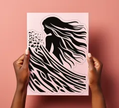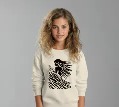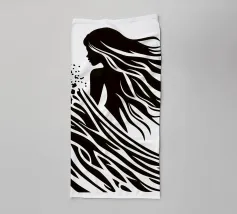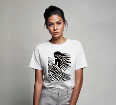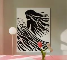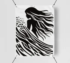 L'arte è quando non si può tralasciare nulla, come si suol dire. Da qui il design minimalista di questa surfista. Una bella donna surfista, capelli lunghi, acqua e onde sono ridotti a linee e superfici semplici. È possibile utilizzare questo disegno astratto su tutti gli sfondi chiari.