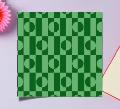 Questo motivo geometrico eclettico e moderno di metà secolo combina un fascino retrò senza tempo con toni freschi e scuri di menta. Il suo design audace ma classico lo rende una scelta perfetta per l'arredamento di un salotto accogliente, aggiungendo un'atmosfera retro-moderna agli interni autunnali e invernali. Un motivo senza soluzione di continuità, elegante e caldo al tempo stesso, ideale per creare un'atmosfera classica ed eclettica.